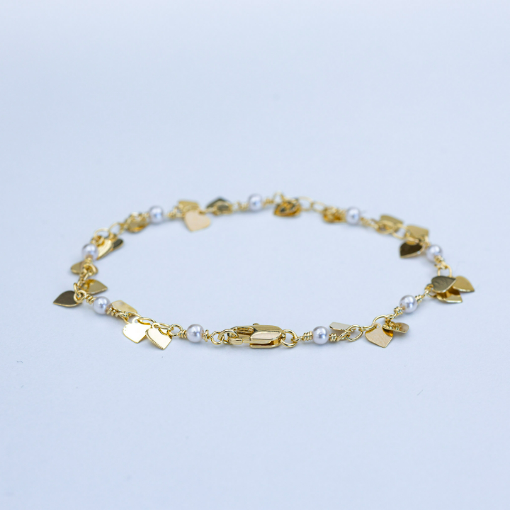 18k Gold Plated Bracelet with Pearls and Heart Charms