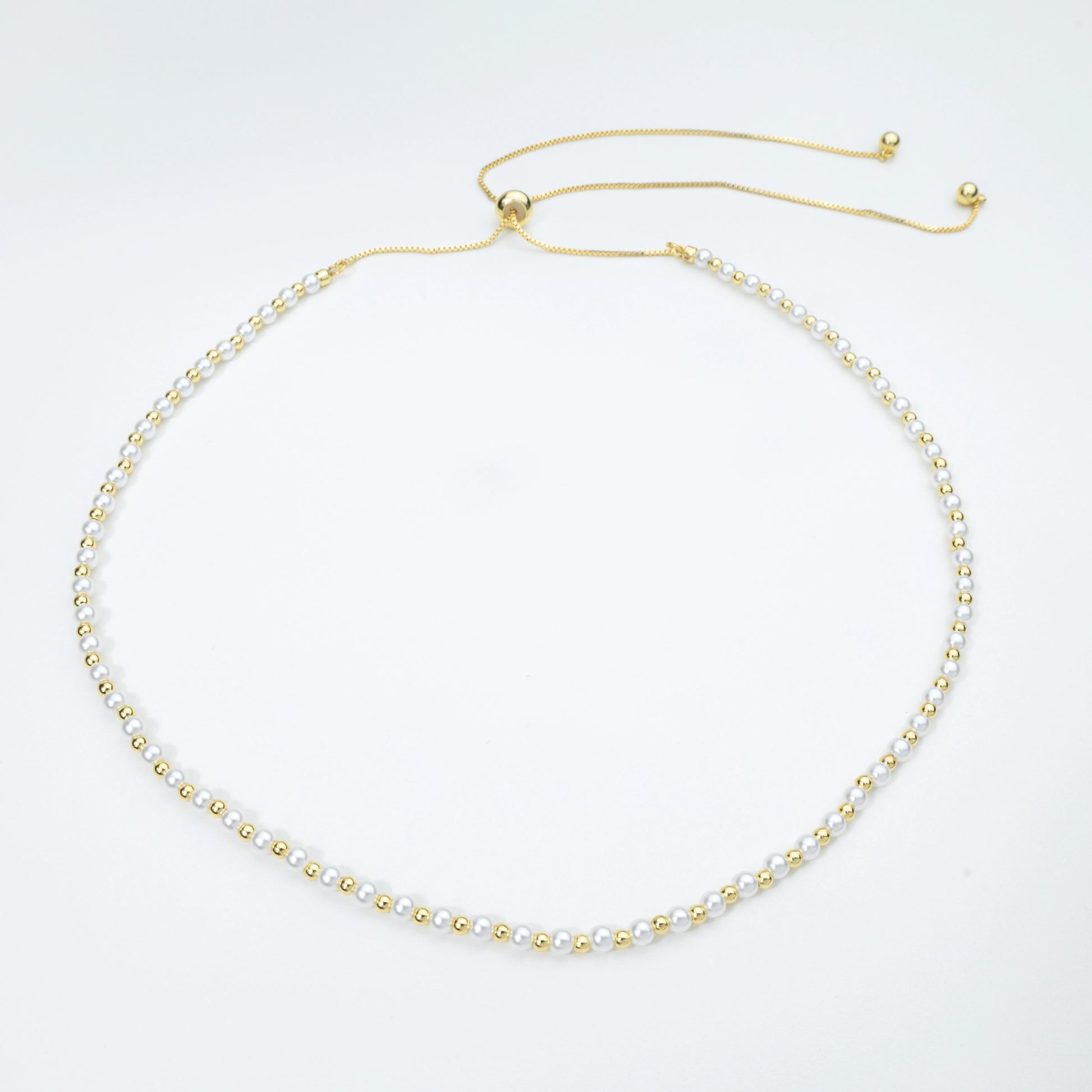 Graceful and versatile, this 4mm Pearl and Gold Bead Adjustable Necklace blends classic elegance with modern charm. Featuring alternating luminous pearls and polished gold beads, it’s the perfect piece to elevate both casual and dressy looks. The sliding adjustable chain allows you to wear it as a delicate choker or a longer layering necklace. Crafted with Guaranteed 18k gold plating, it is hypoallergenic, nickel-free, and water resistant—a timeless treasure designed for everyday wear and special moments alike.