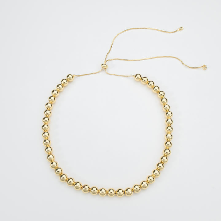 Make a bold yet timeless statement with this 8mm Gold Bead Adjustable Necklace, featuring perfectly polished spheres that radiate luxury. The sliding adjustable chain ensures the perfect fit, whether you prefer a chic choker style or a longer layered look. Crafted with Guaranteed 18k gold plating, this piece is hypoallergenic, nickel-free, and water resistant, designed for effortless elegance and everyday wear. A modern classic that instantly elevates any outfit.