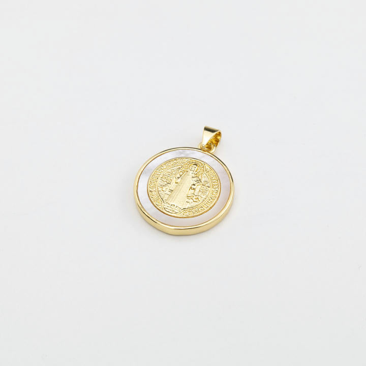 meaningful blend of elegance and devotion, this Choker #469 features a sleek gold bead-accented chain paired with a St. Benedict medallion pendant set in a luminous white shell and framed by a polished circular bezel. Symbolizing protection and faith, this necklace is both stylish and spiritual. Crafted with Guaranteed 18k gold plating, it is hypoallergenic, nickel-free, and water resistant, ensuring lasting shine and comfort for everyday wear. A timeless piece that carries beauty with purpose.